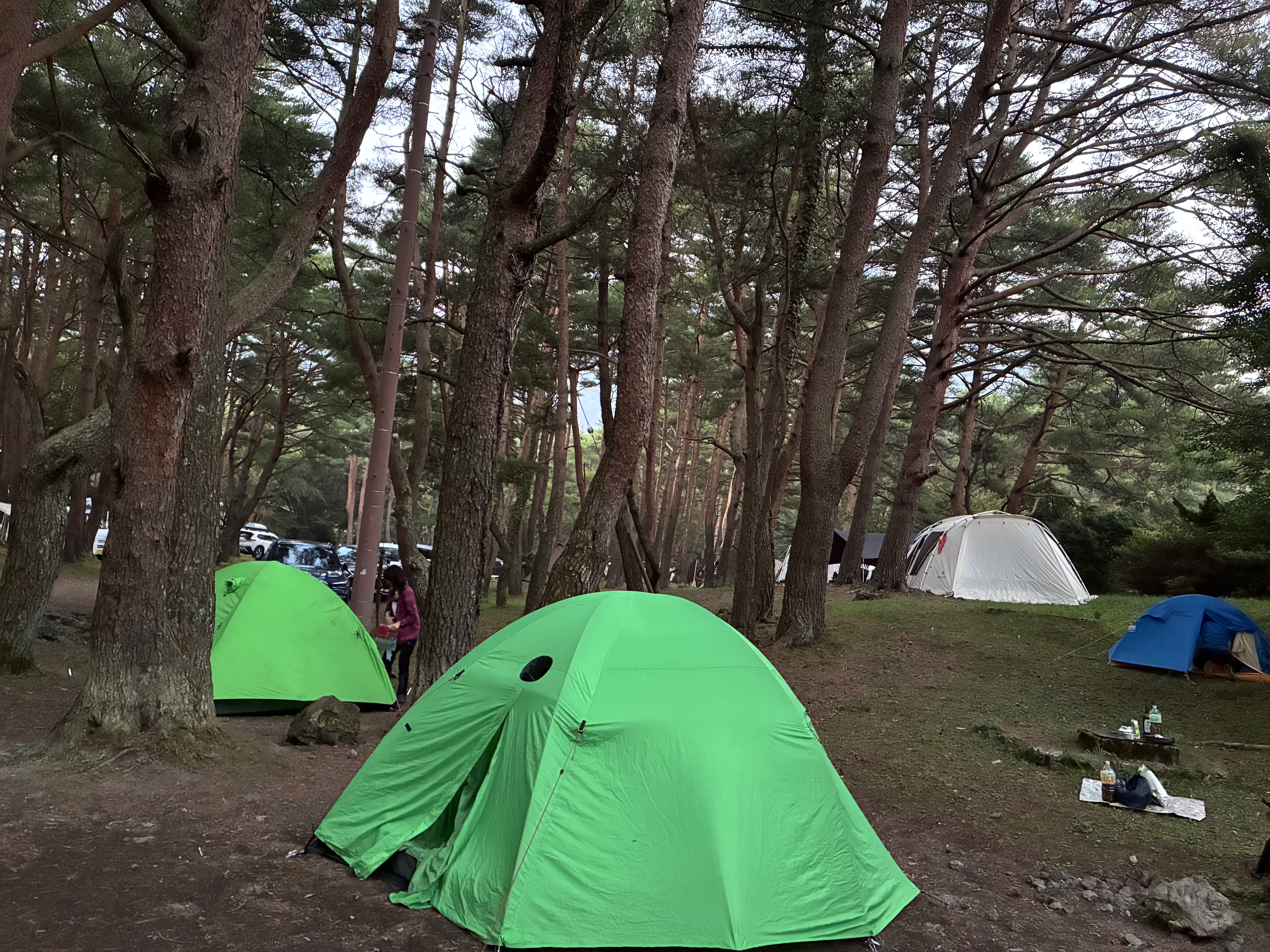 1日目はテントを設営し、買い出しとまったり宴会。林間オートサイト、本栖湖がすぐという立地のため、大賑わい。本栖湖ではSUPとカヌーを楽しむ方が多いようです。林間なので、心地よい気温で外でおつまみを作成し、のんびり飲んで過ごしました。