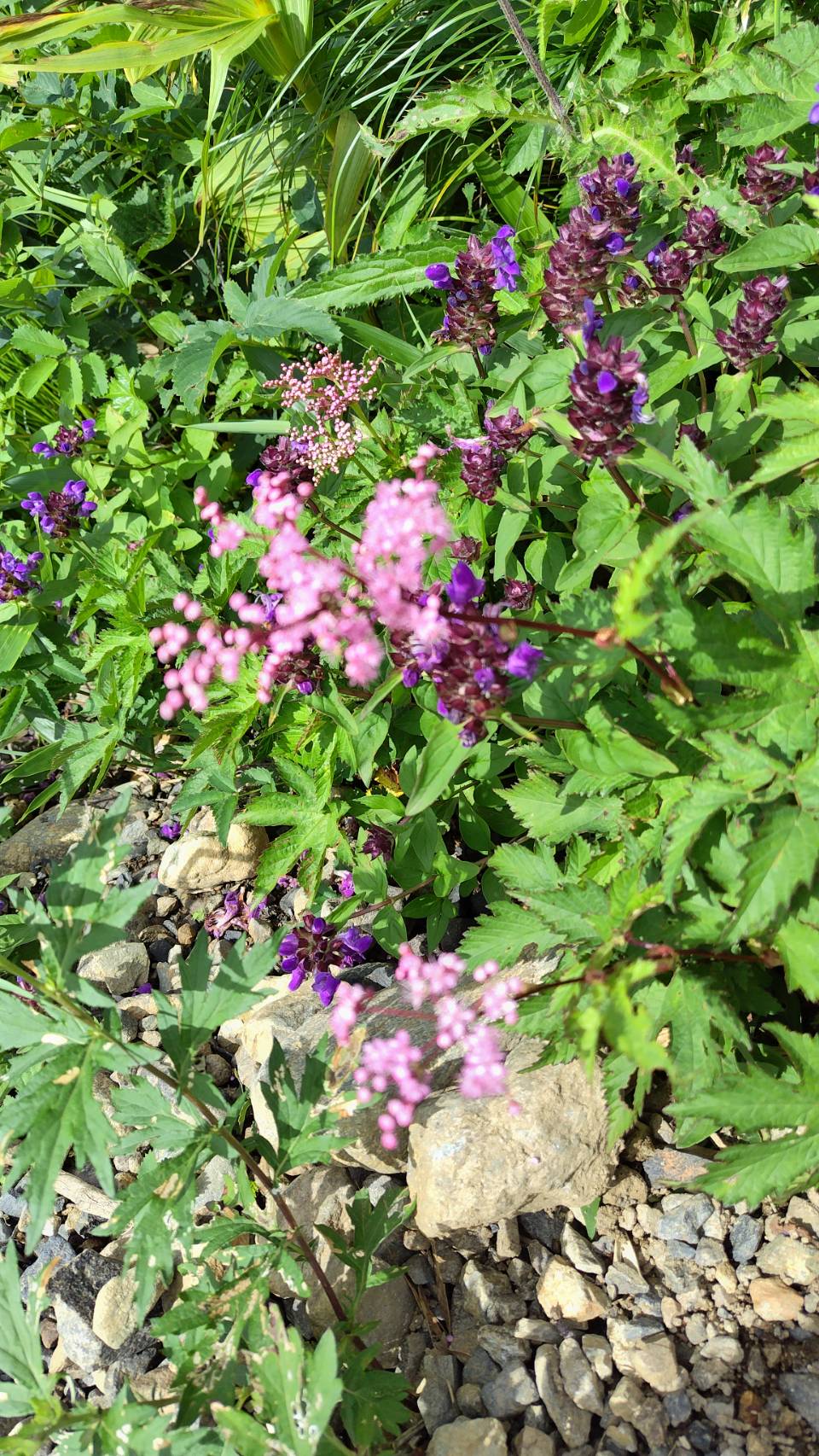 8/9 朝から晴天で剱岳、立山方面が良くみえた。下山時には白馬三山もくっきりと見え高山植物もあちこち咲いていたので何度も立ち止まりカメラタイムを繰り返す。