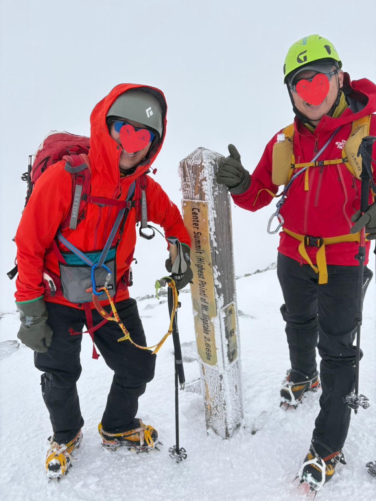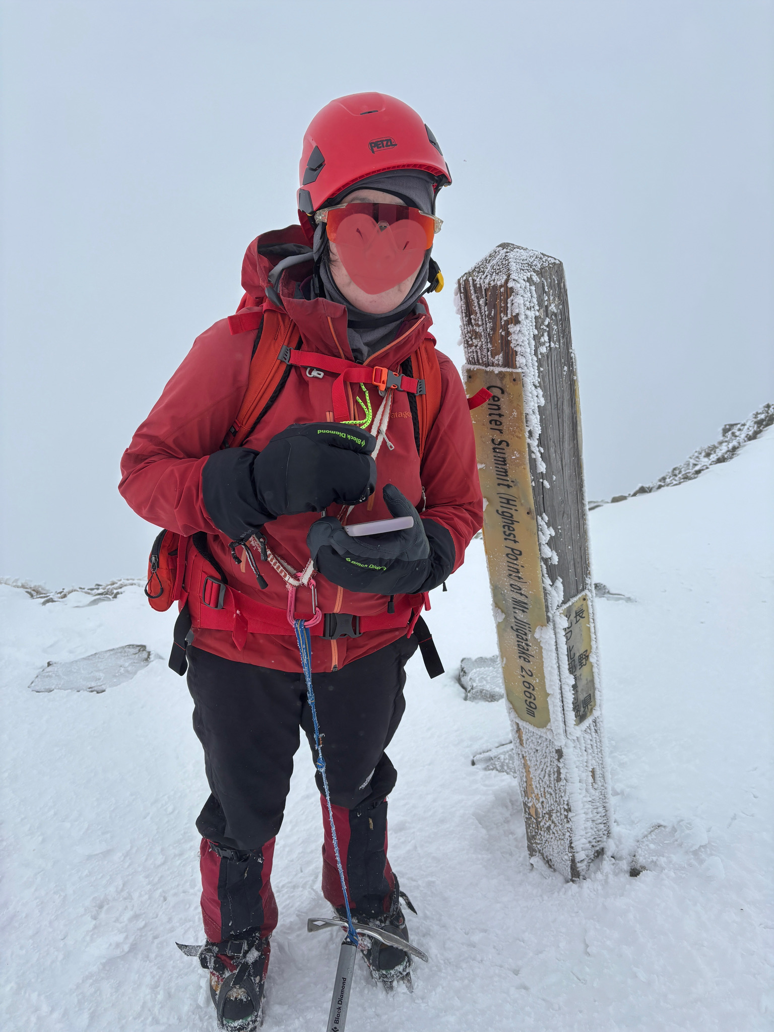 尾根に出るとすこし視界が開けて雲海が見えたりそれなりに展望もありましたが、ジャンクションピークを抜け最後の主稜線にでるとガスで視界はなく、風もありしかもかなりの急登。先の見えない中なんとか登り切り頂上に到達すると達成感でいっぱいです。