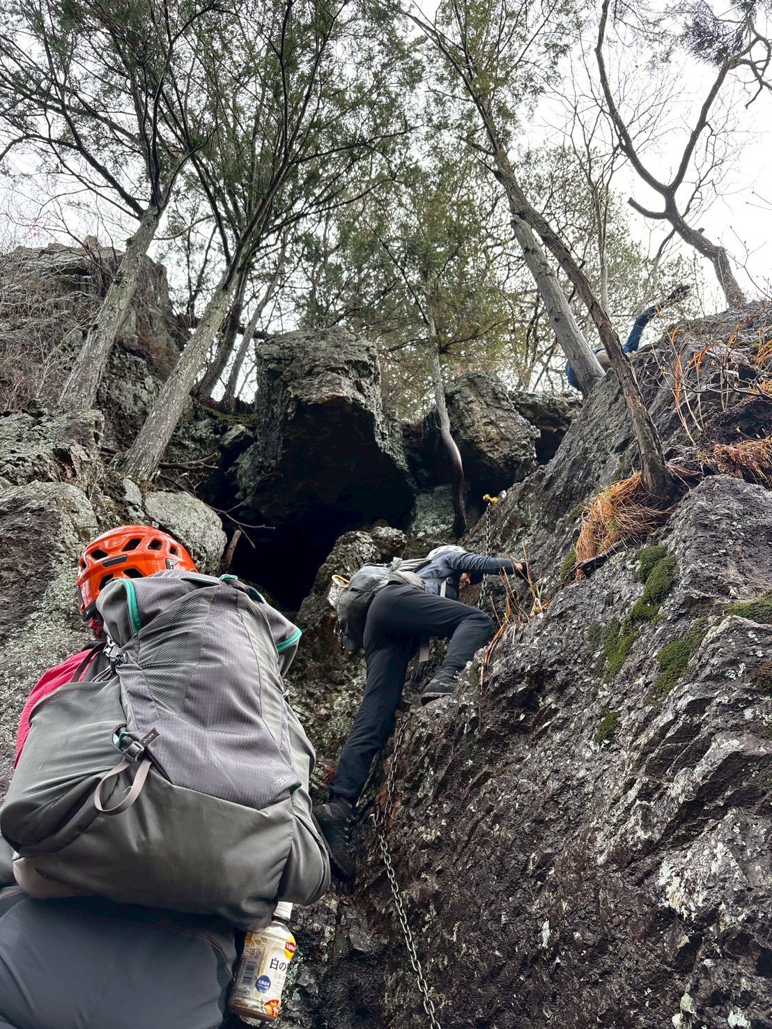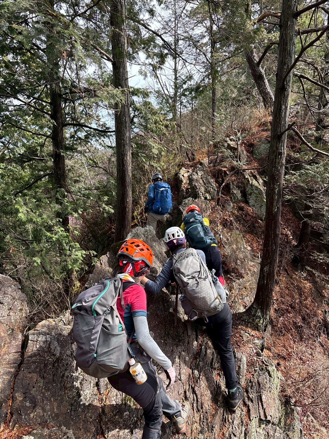 今回のトレーニングポイントは、〔岩場を三点支持を守りながら、急がずゆっくりと通過する〕です。